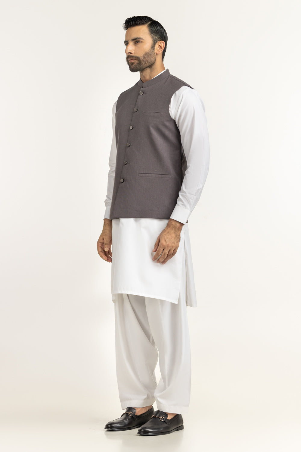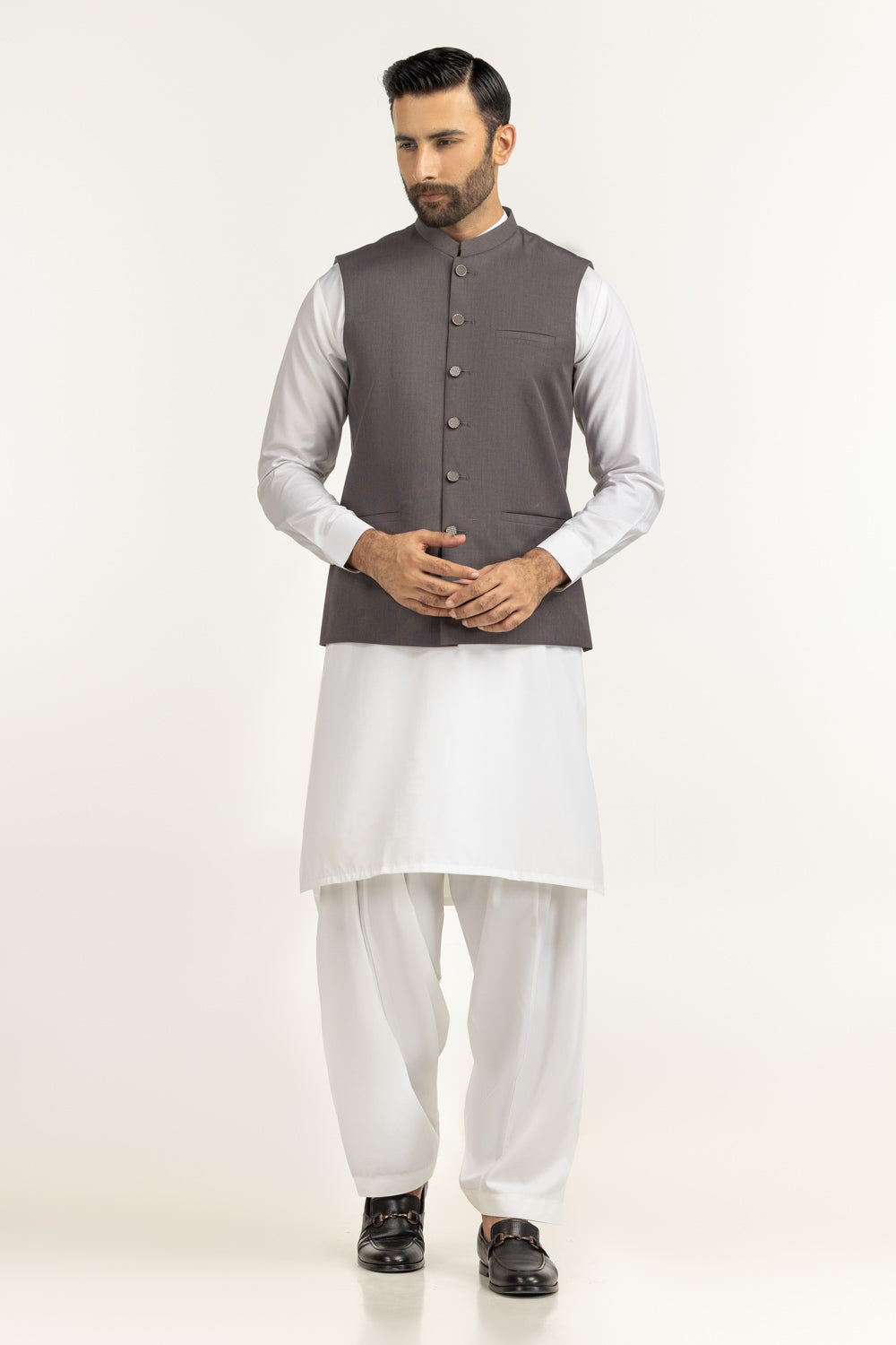 Add refined elegance to your traditional look with this men���s ethnic waistcoat, tailored from premium-quality fabric for a sharp and structured fit. Designed with a sleek band collar and a clean front button closure, it delivers a timeless yet modern appeal. The minimalist design, functional pockets, and smooth finish make it a versatile layering piece over kameez Shalwar. Ideal for festive occasions, formal events, and cultural gatherings.����������