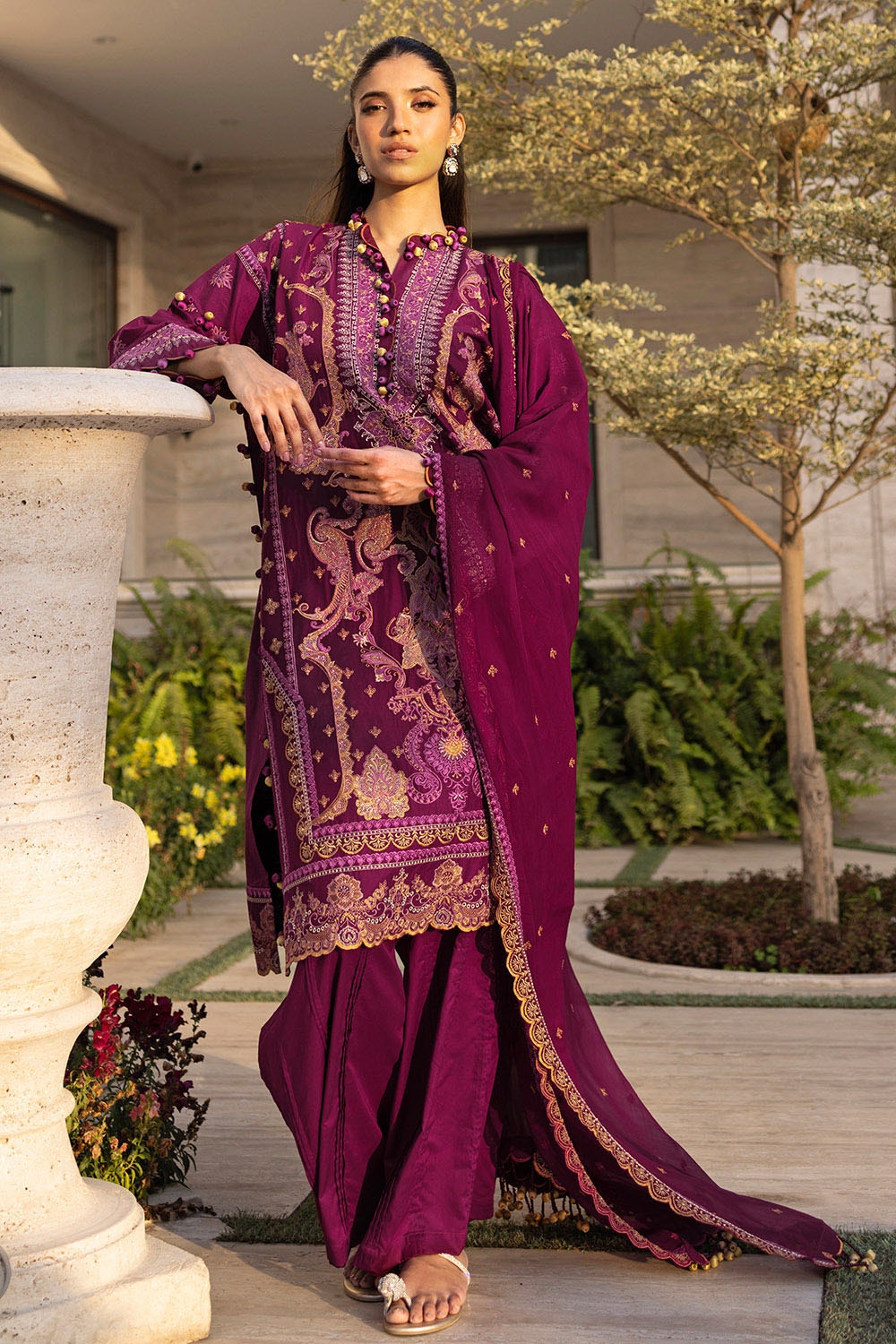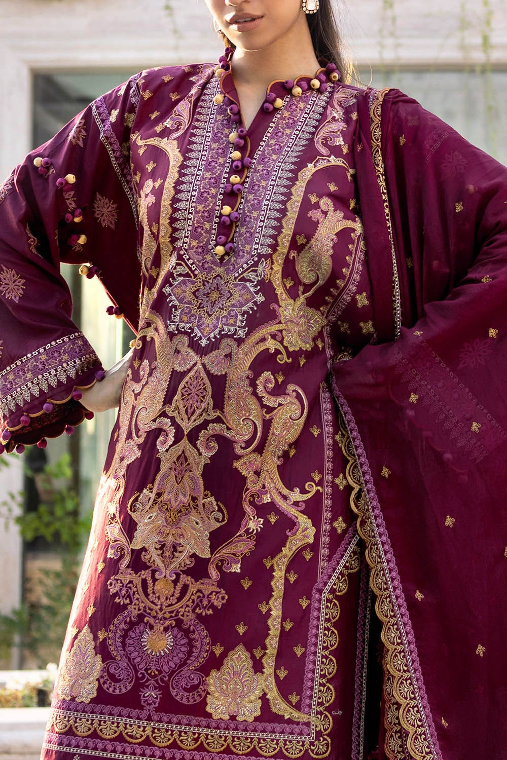 UAE -3 Piece Unstitched Embroidered Lawn Suit with Embroidered Chiffon Dupatta FE-52100