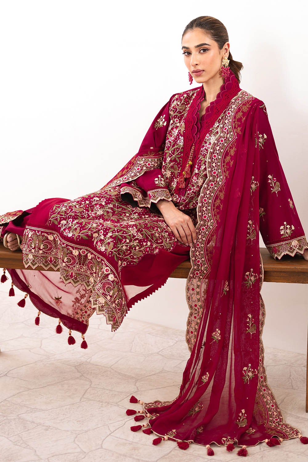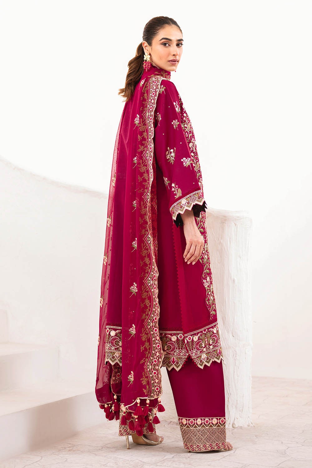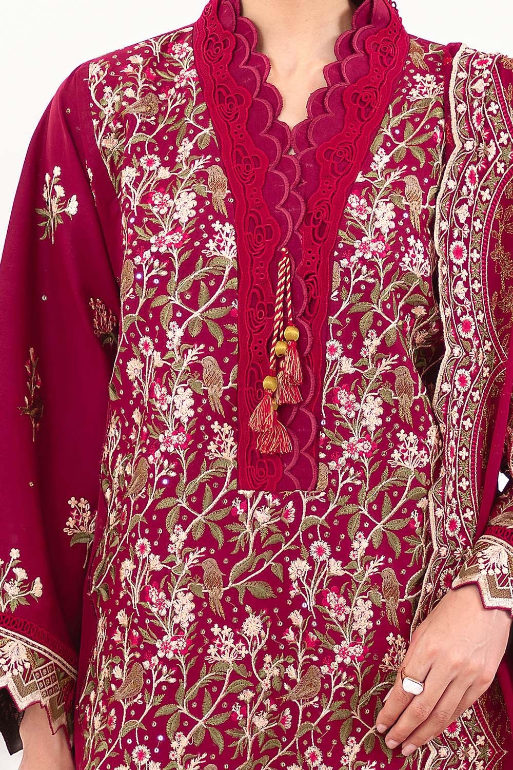 • Embroidered Lawn Shirt Front & Sleeves with Embroidered Borders for Front & Back. Dyed Lawn Back - 2.78 Meters