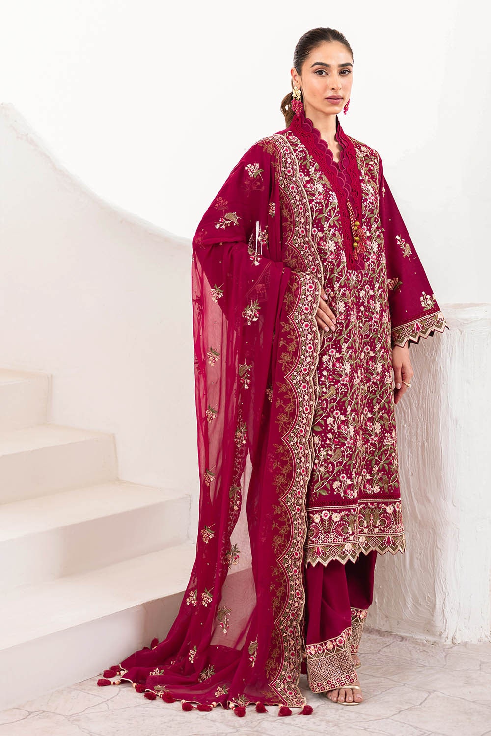 UAE -3 Piece Unstitched Embroidered Lawn Suit with Embroidered Chiffon Dupatta FE-52129