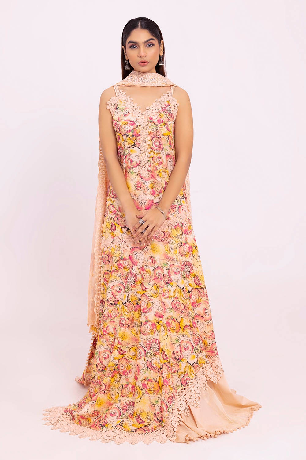 UAE -3 Piece Unstitched Printed Lawn Suit with Embroidered Chiffon Dupatta BCT-52016