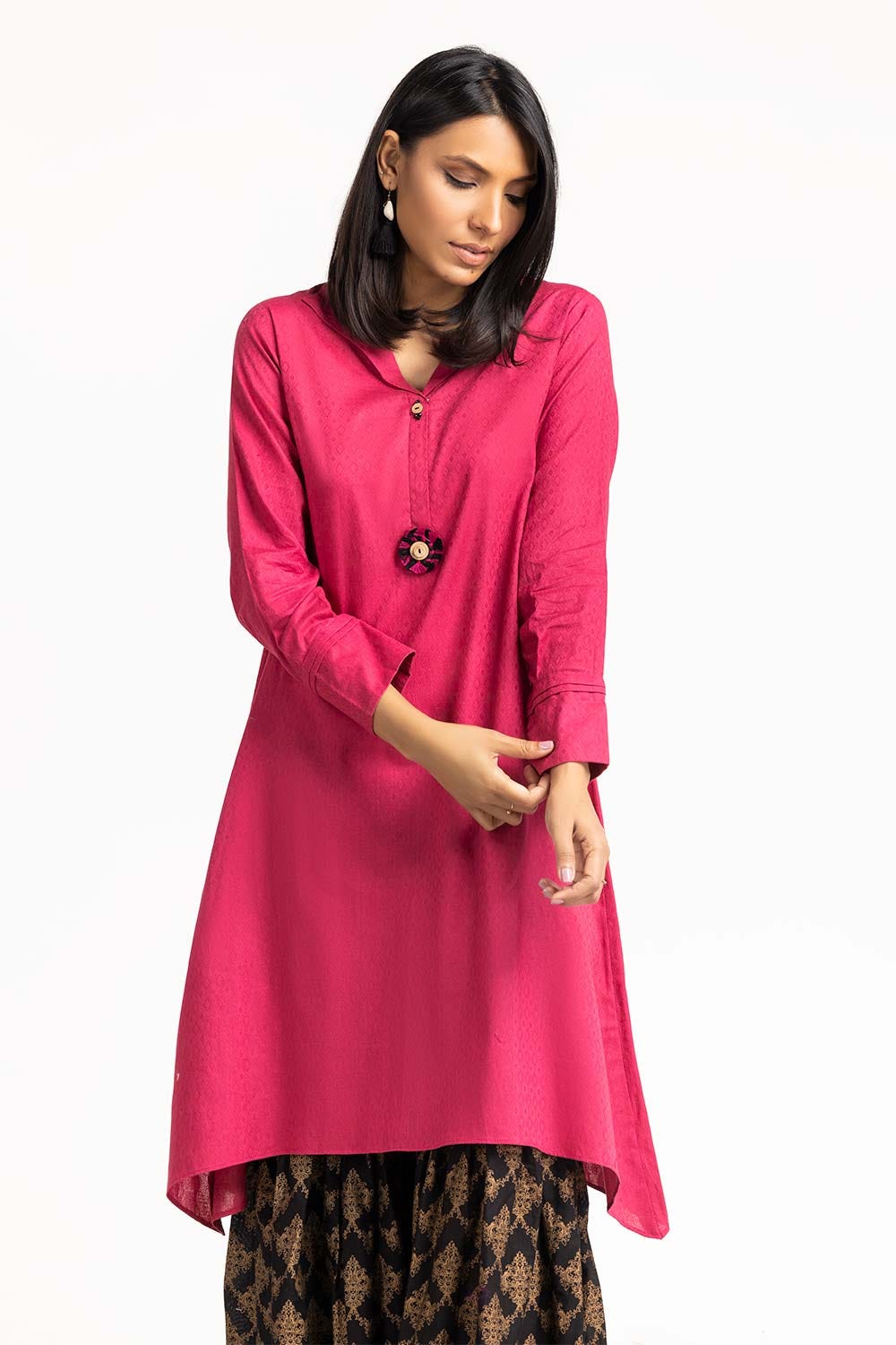 Pink dobby A-line shirt featuring a sailor collar with detailing and cuffed sleeves.