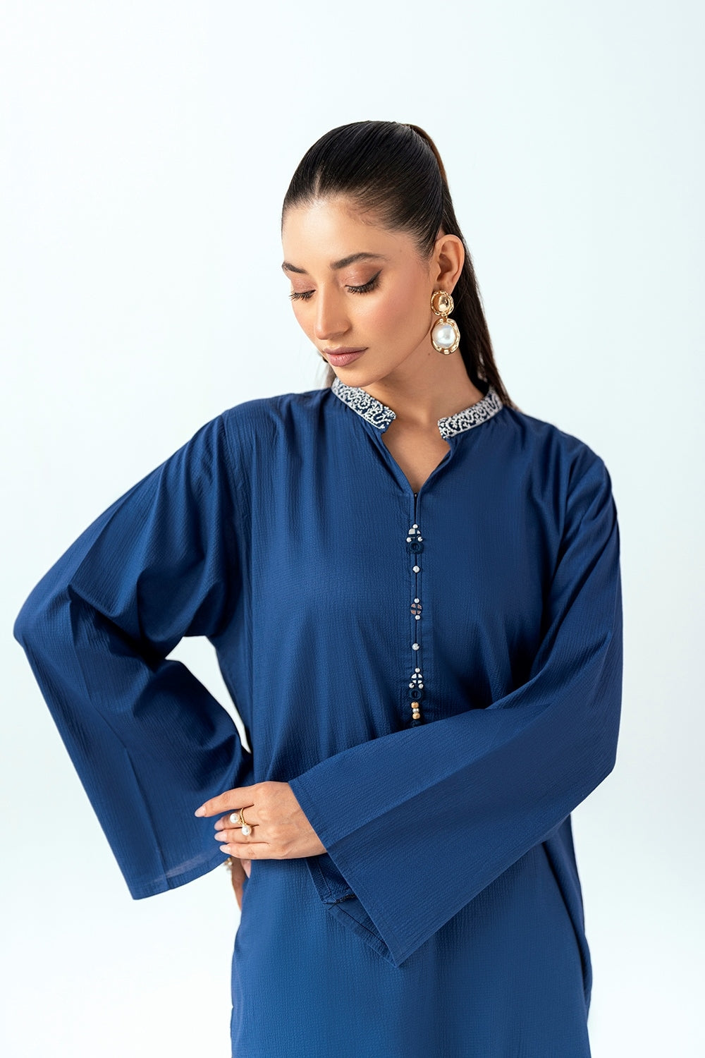 Designed for sunny strolls and casual weekends, this loose-fit co-ord set brings together comfort and charm with its ripple crinkle fabric. Its minimal embroidery enhances the overall look without overpowering. While the flowy silhouette in a bold Navy hue moves with ease, all day long. A refined essential for women who appreciate subtle detail in their everyday wardrobe.
