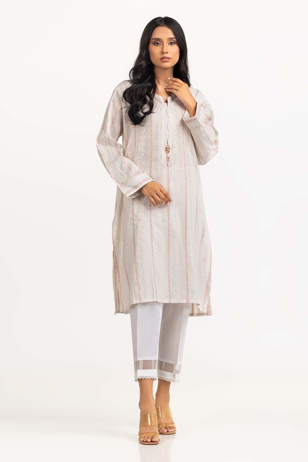 Rendered in a soft beige tone, this jacquard shirt showcases delicate textured pattern that elevate its understated look. The loose-fit design allows ease of movement and all-day comfort, making it an elegant choice for everyday casual wear.