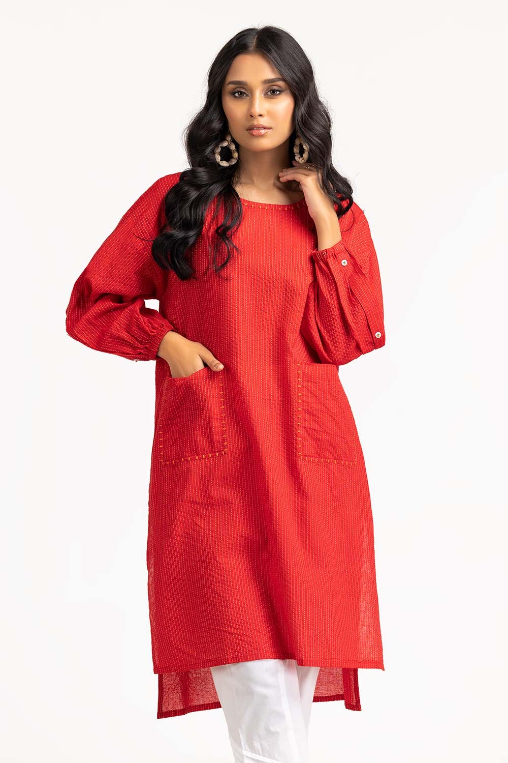 UAE -1Pc Dyed Cotton Stripes Embroidered Kurti GLS-23-236