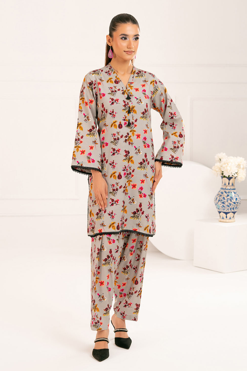 UAE-2 Piece Printed Slub Viscose Suit WNST-52006