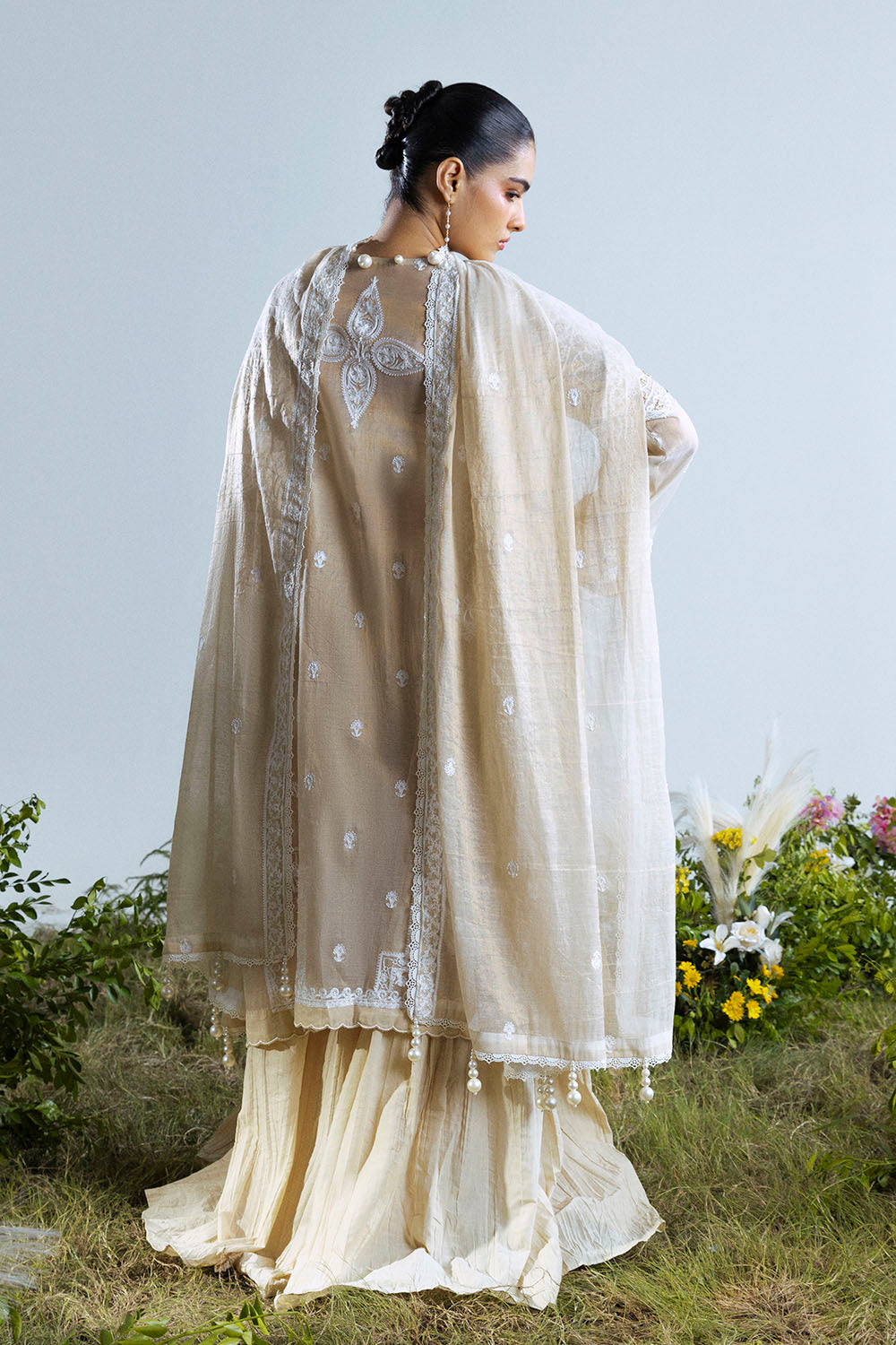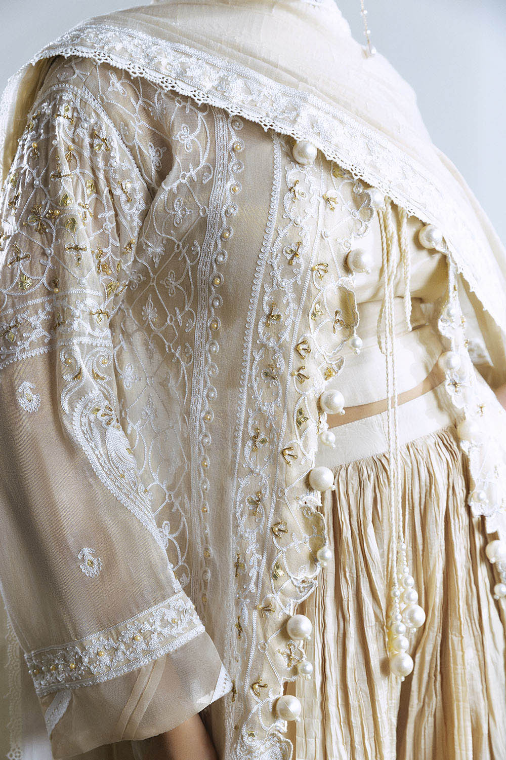 • Embroidered Mehsuri Shirt Front & Sleeves with Handwork. Embroidered Mehsuri Back. - 3.2 Meters