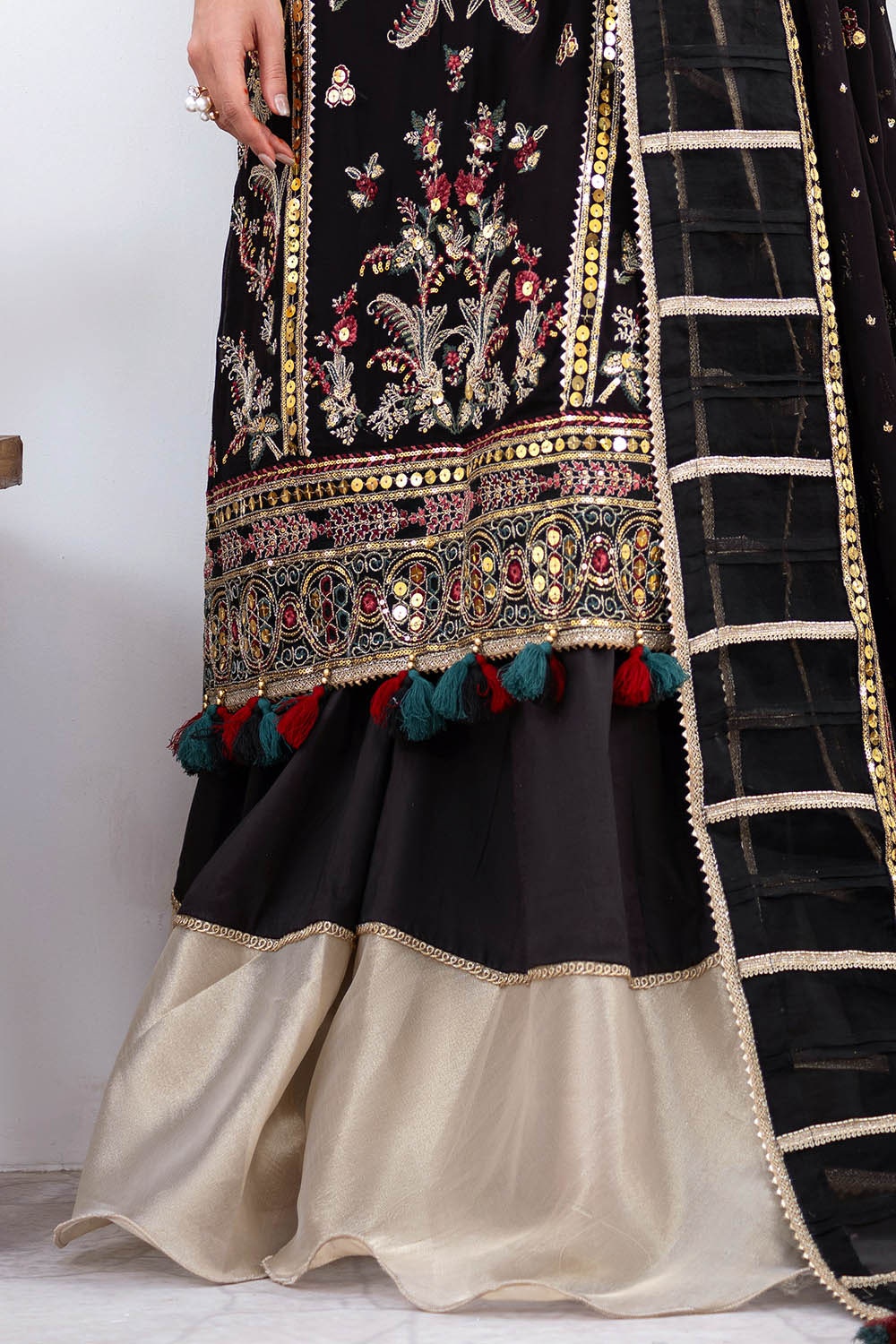 • Embroidered Chiffon Shirt Front Panel, Side Panels, Back & Sleeves with Embroidered Borders for Front & Back on Organza - 2.89 Meters