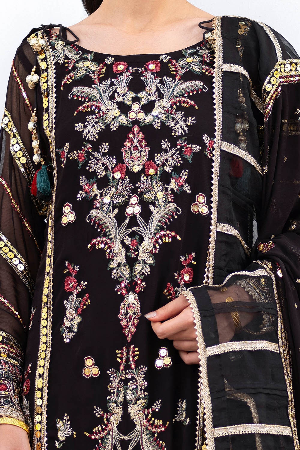 UAE -3 Piece Unstitched Embroidered Chiffon Suit with Embroidered Chiffon Dupatta FE-52167