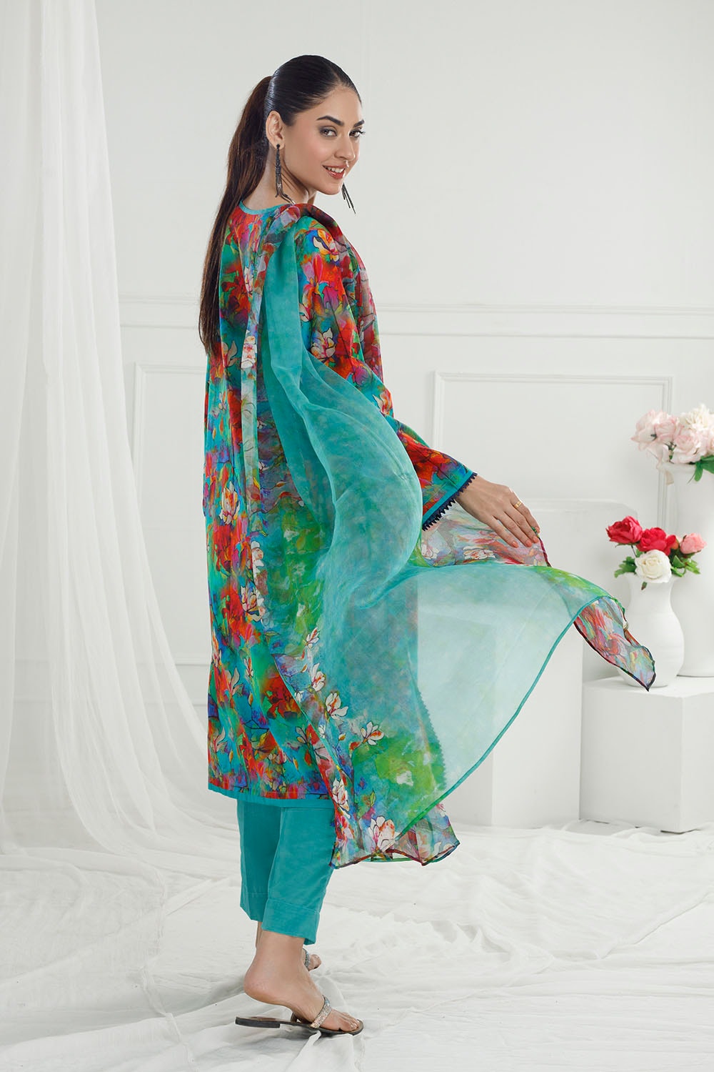 UAE -3 Piece Unstitched Printed Lawn Suit with Printed Pure Silk Chiffon Dupatta C-52003