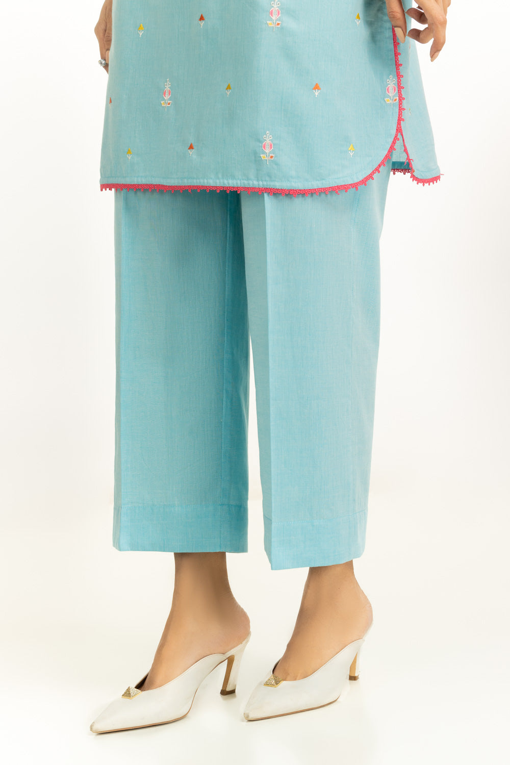 This jacquard suit offers a cool, relaxed feel, making it suitable for warm summer days. The loose fit allows the fabric to fall gracefully, helping maintain comfort during extended wear. The embroidery adds depth to the shirt, while the plain dyed trouser keeps the outfit balanced and easy to manage.