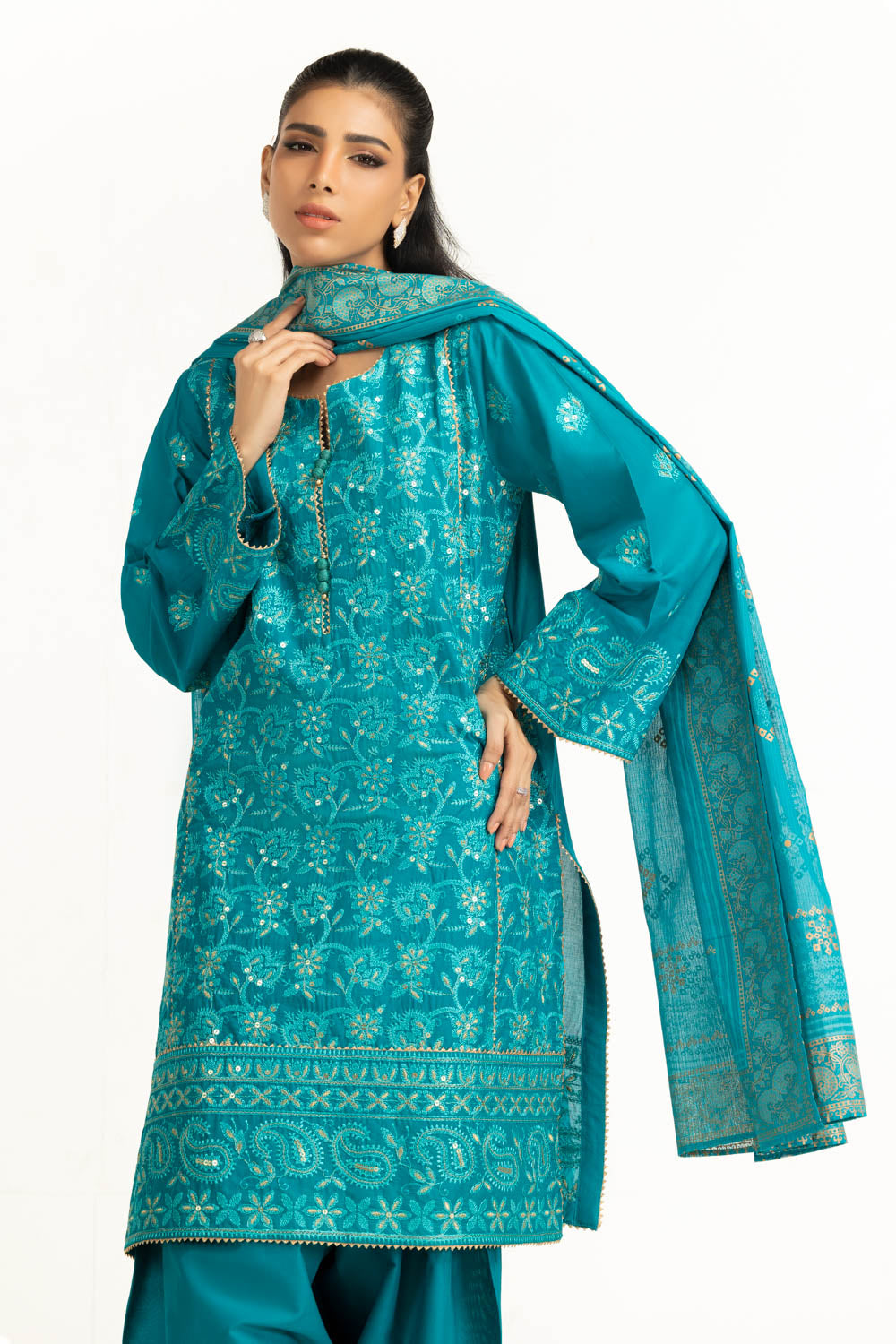UAE-3PC Lawn Sequence Embroidered Suit IUSTKSD-2004