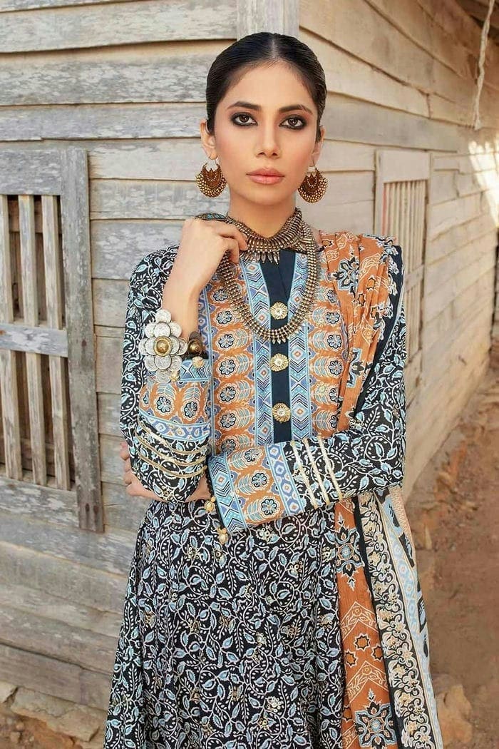 UAE -3PC Lawn Unstitched Foil Printed Unstitched Suit With Denting Lawn Dupatta DN-32091 B