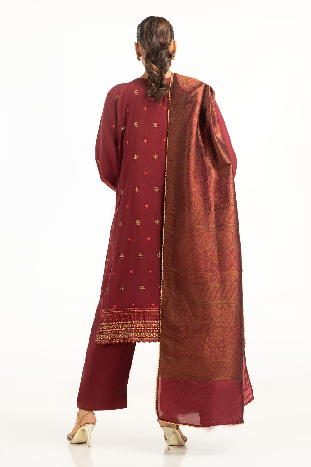 UAE-3PC Raw silk Embroidered Suit IUSTKSD-875