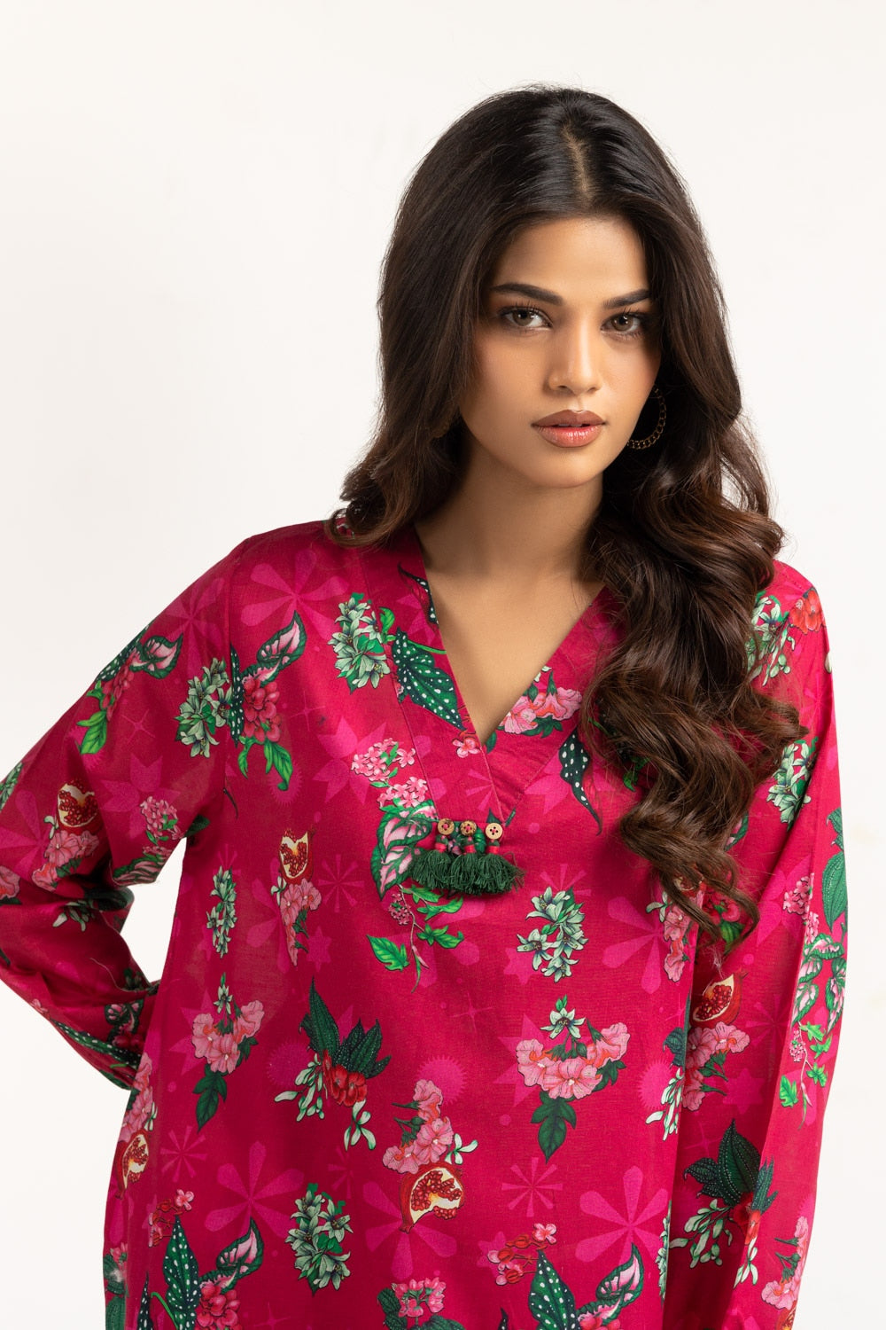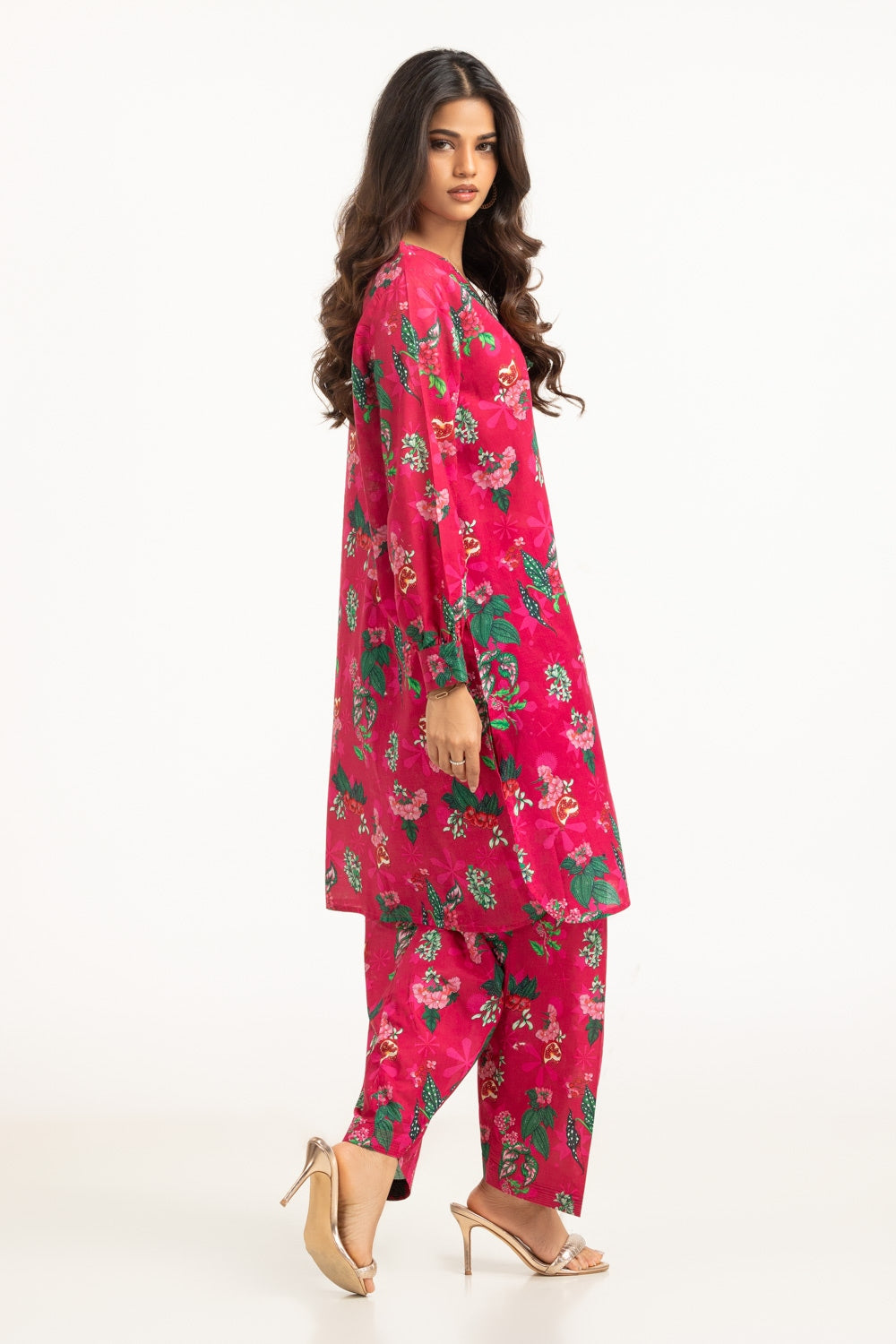 Stay chic this season with this vibrant floral printed co-ord set in breezy lawn fabric tailored in a relaxed fit silhouette. The contemporary floral design makes it a stylish and effortless summer outfit. While the structured cuff sleeves enhance the overall look of the outfit.