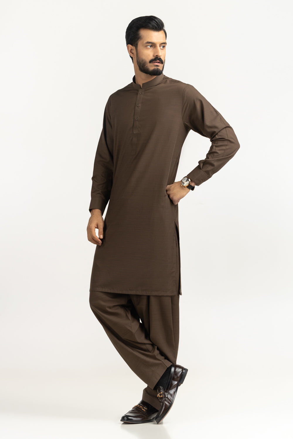 Indulge in understated luxury with this elegant Suit from Ideas by Gul Ahmed. Expertly tailored by premium fabric, rendered in a sophisticated dark colors palette, this ensemble is perfect for festive gatherings and refined occasions, offering timeless elegance with contemporary finesse for the modern gentleman.