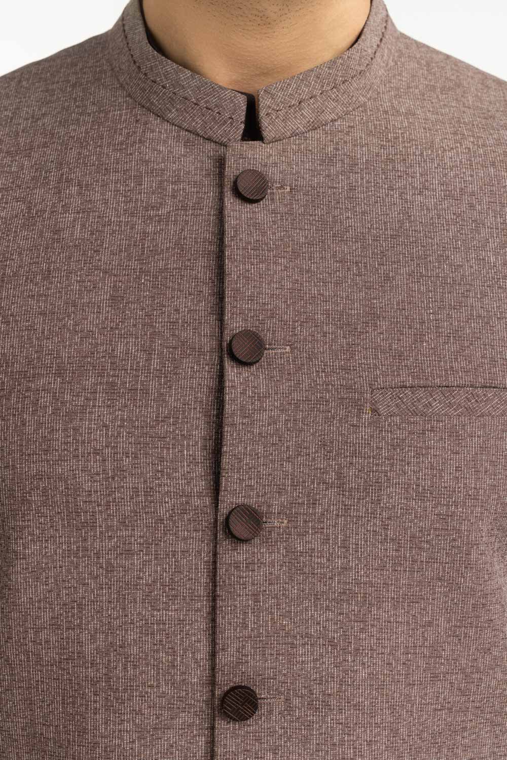 Add a refined traditional touch to your ethnic wardrobe with this men���s eastern waistcoat, designed to complement classic shalwar kameez looks. Featuring a structured silhouette with a band collar and front button closure, this waistcoat offers a balanced blend of tradition and modern styling.�� Crafted from premium quality textured fabric, it provides a neat drape and comfortable wear, making it suitable for long hours. The subtle tone and clean finish make it easy to pair with both light and dark-colored kameez shalwar to enhancing your overall appearance.��